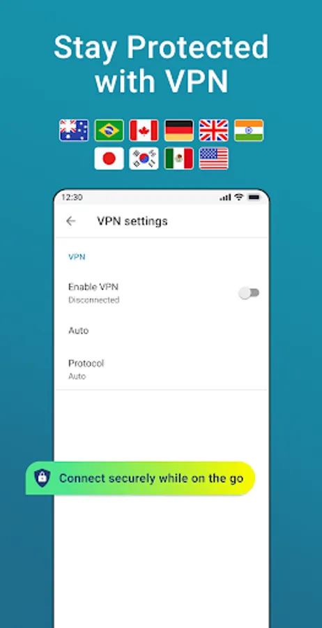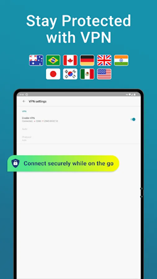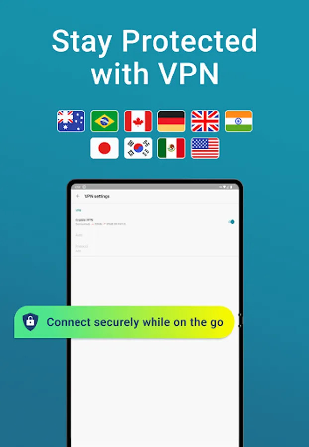 - Enhance your online privacy and protect your data on unsecured networks with our in-app VP that works throughout your device.