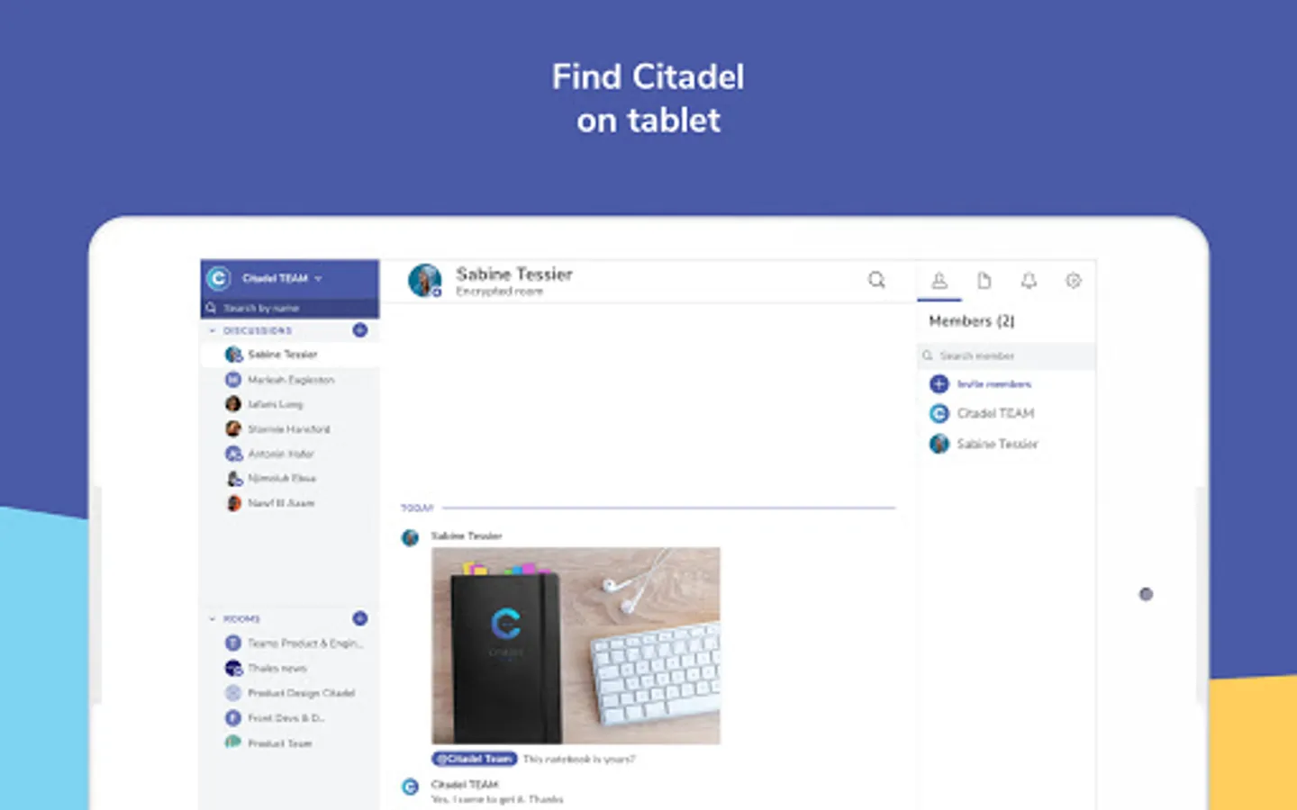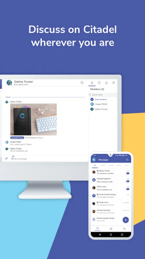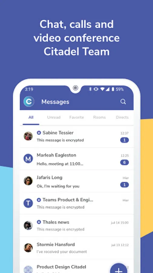 With Citadel Team, start calls, participate in audio or video conferences and send messages instantly and with no charge, create groups with all your colleagues, share documents, videos and high-quality photos with complete confidentiality.