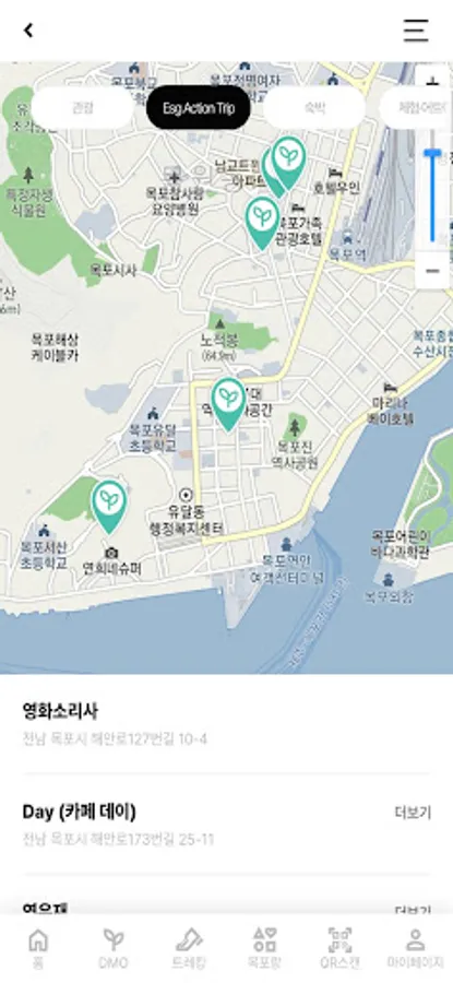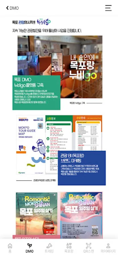 ‘Mokporang Nubigo’ is an application for revitalizing Mokpo tourism by the (foundation) Mokpo Cultural Foundation, which was selected in the 2020-2023 regional tourism promotion organization DMO project. As one of the four major tourism base cities, Mokpo leads ESG tourism such as Zero Waste and Net Zero, and promotes various tourism projects such as one-week living and Mokpo tour trekking as continuous projects every year. As a project to inform domestic and foreign tourists of Mokpo with infinite charm, the Mokporang Nubigo app provides points accumulation function through eco-friendly activities, discount coupons for cafes in the old downtown area, trekking map, pedometer, and various food and entertainment of Mokpo. It is designed to be seen and felt intuitively.