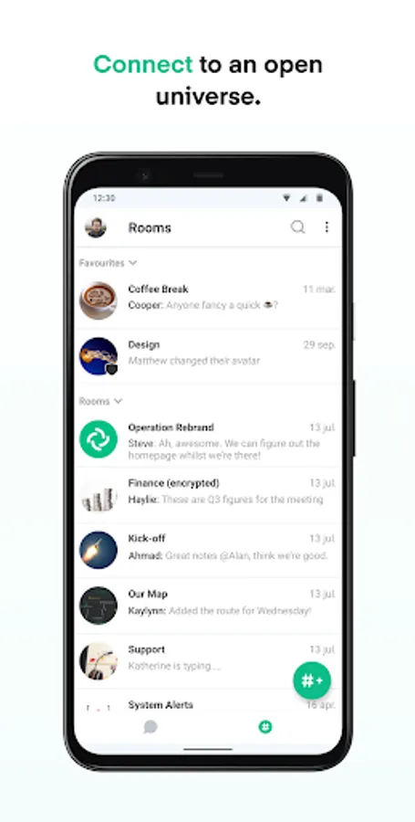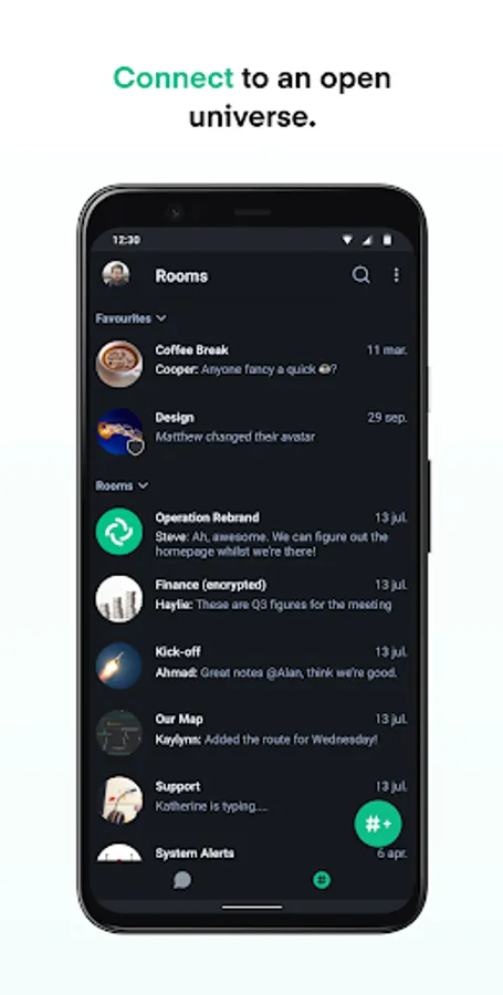 Stay in touch wherever you are with fully synchronised message history across all your devices and on the web at https://app.element.io