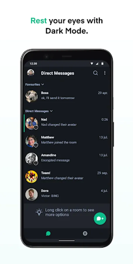- Fully encrypted messages to allow safer corporate communication, even for remote workers
