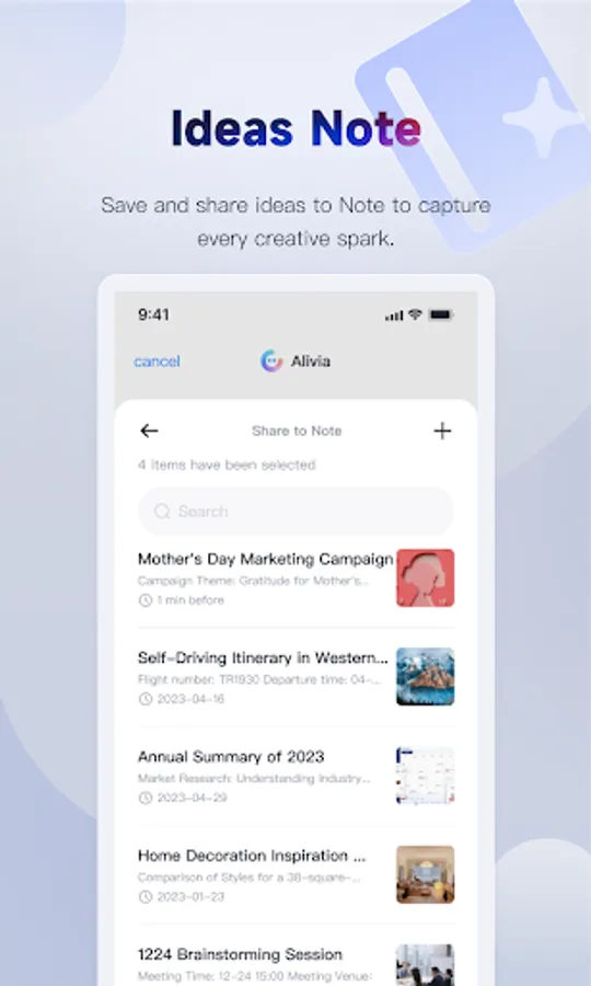 "Ideas Note": To manage high-quality answers generated during chat and mapping and share your ideas through various forms, such as posters, text, links, etc.