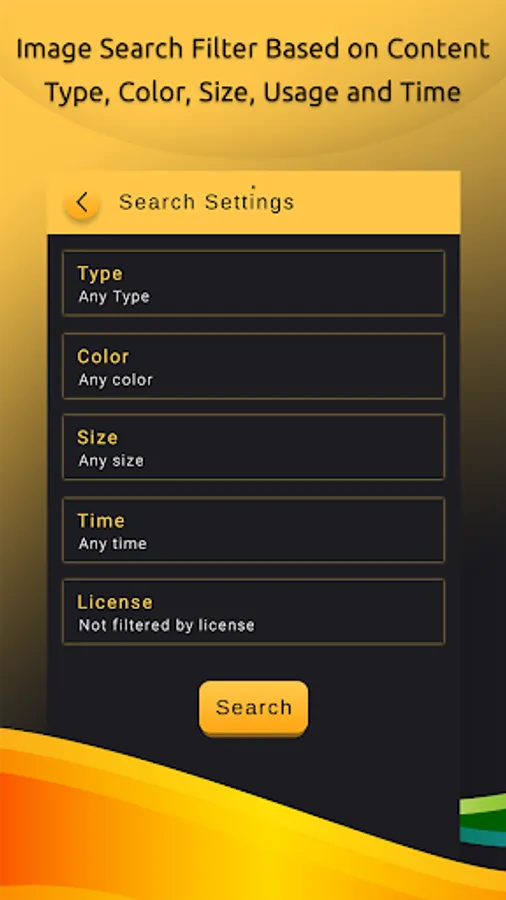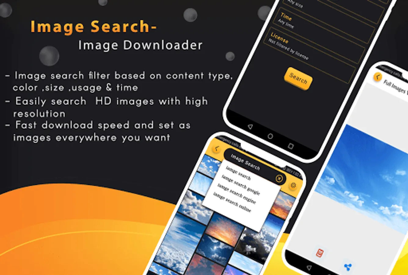 Image Search – Images Downloader app allows you to set search setting to get result w.r.t File Type, Colour, File Size, Time and Licence Filter.