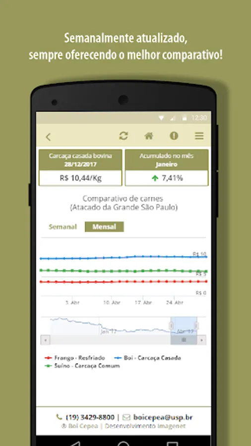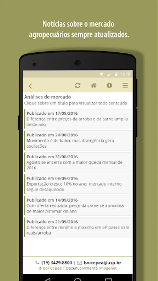 APP Cepea Boi was developed for farmers who make spare animals business or animals for slaughter. This market agent can view a number of important information on the marketing of Brazilian bovine meat products, as average prices for cattle, replacement, meat and inputs, graphics and analysis on the industry.