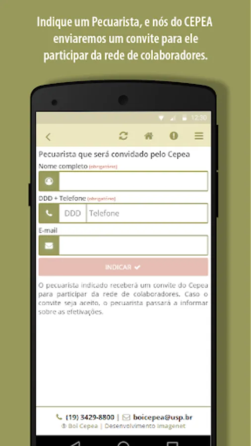 The application also allows users to send business information directly to Cepea, easily and efficiently.