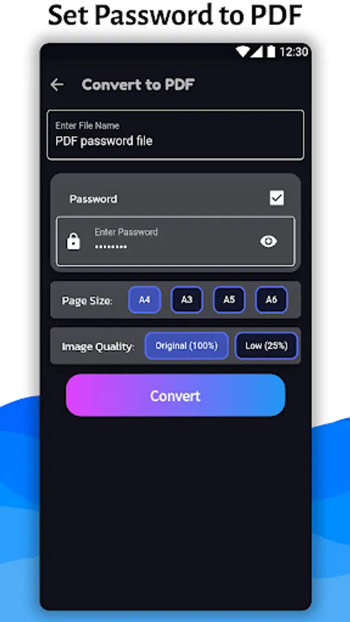 You can set password to PDF file before converting your Image to PDF. By using this app you can protect your PDF by setting the password to PDF.