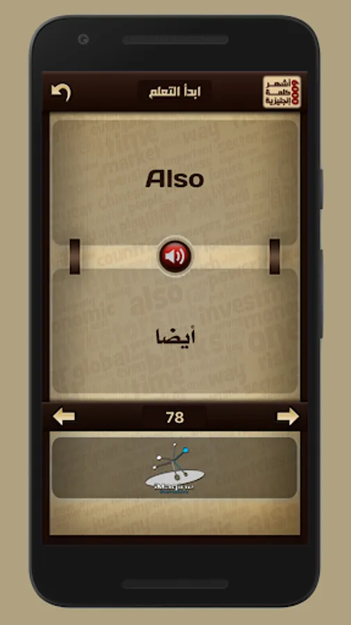 عرض الكلمة الإنجليزية ومعناها بالعربية مع إمكانية سماع الكلمة الإنجليزية