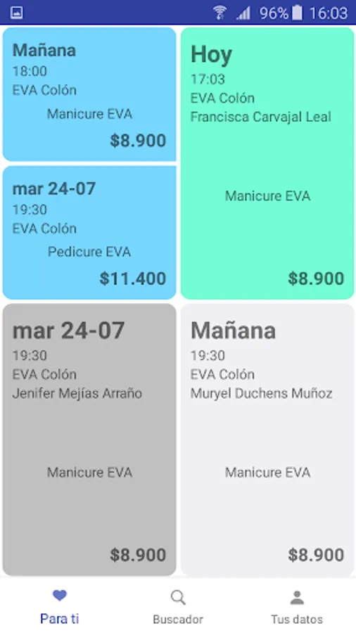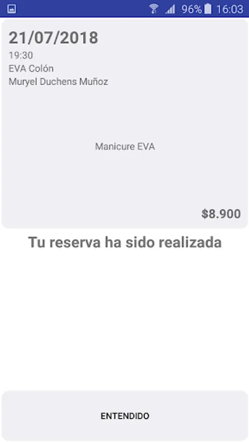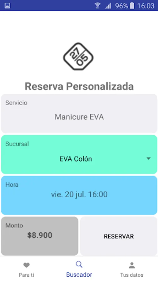 You have your reservation quickly with a single tap on the screen of your iPhone with custom suggestions that Eva has for you, or if you prefer to make your reservation by selecting the service, the branch and date.