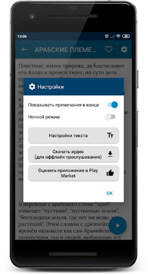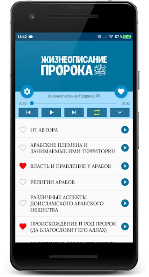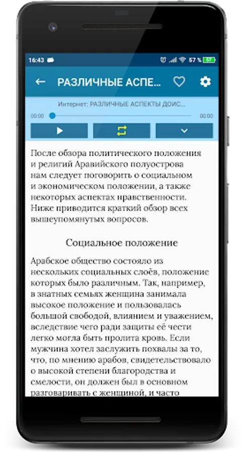 • The default playback is via the Internet, it is possible to download audio files and listen without the Internet (offline)