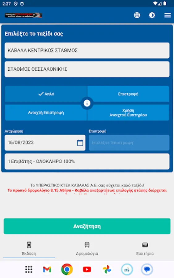 The KTEL Kavalas app is a mobile application that provides information about the bus routes of KTEL Kavalas. It allows users to check the bus schedules, bus live tracking, plan their trips, and purchase tickets online.