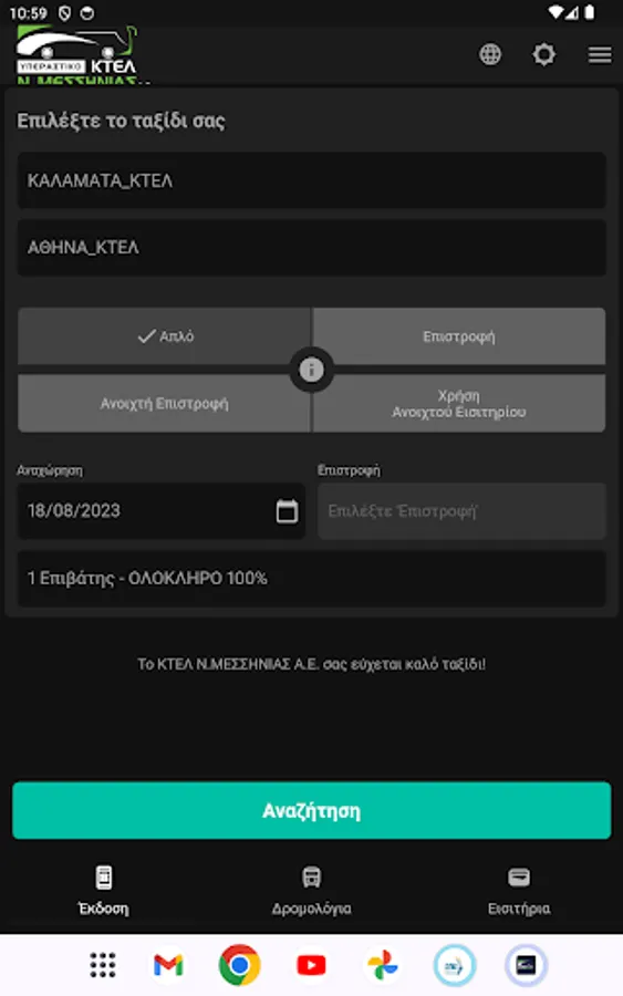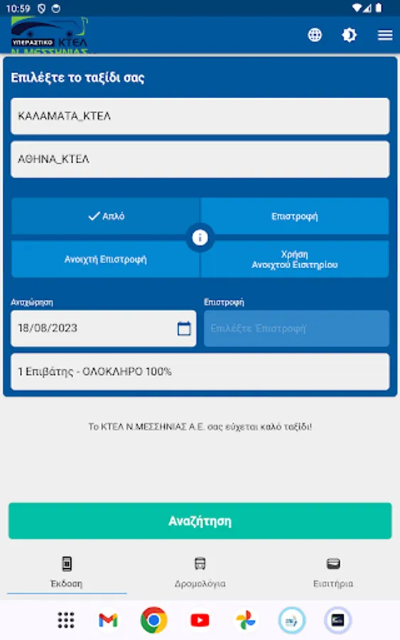 The KTEL Messinias app is a mobile application that provides information about the bus routes of KTEL Messinias. It allows users to check the bus schedules, bus live tracking, plan their trips, and purchase tickets online.