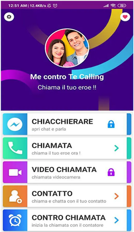 Today, me contro te - signor s call is coming with many features, like you can simulate a fake call with the famous person that you like and your idol, so here in me contro te slime call fake call, and also you have a fake chat with him, and also receiving a cool video call from me contro te music calling, and there is also a contact section when you can also contact by fake calling other famous personalities, they are related to chiocciola me contro te calling app.