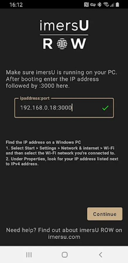 Enter IP address of PC into Companion App followed by :3000. Wait for Companion App to connect and select Erg model. Follow on=screen instructions to connect. You will need to pull once on the erg to make the connection to the game - the Machine box will light up.