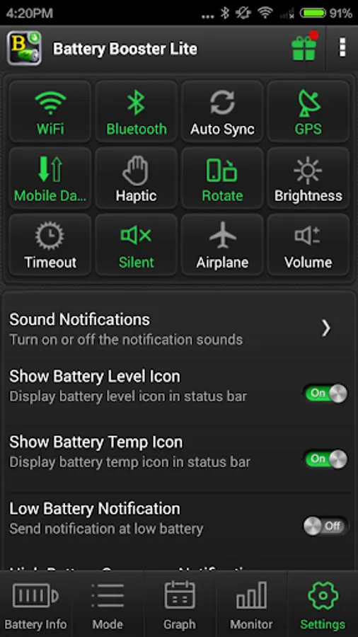 Battery Booster provides real-time battery information, including battery level, battery temp, remaining battery usage time, and so on.
