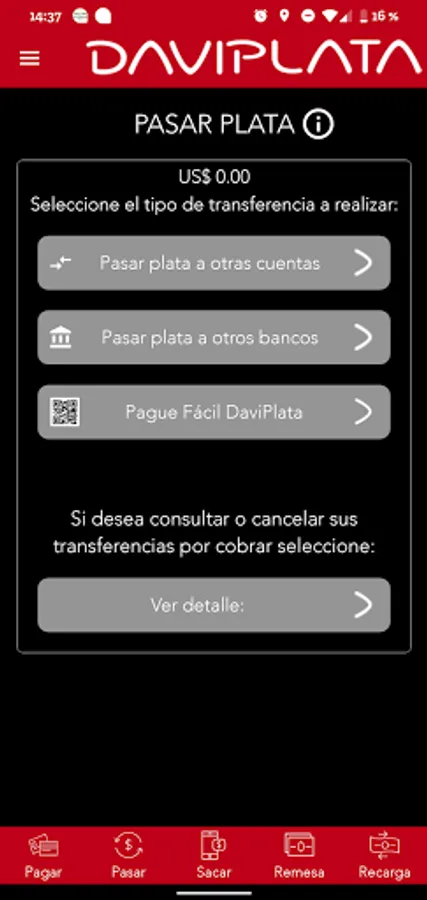 • Pass money from DaviPlata to other active cell phones in DaviPlata or to free savings accounts.