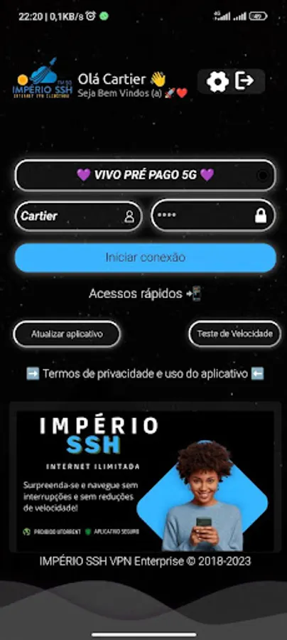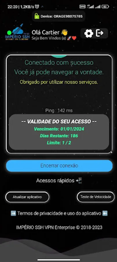 THE IMPÉRIO SSH APP is a new VPN connection service that uses the connection method called V2Ray, guaranteeing your privacy during browsing.