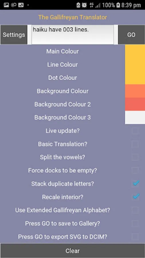 Privacy Policy: The Gallifreyan Translator does not request, store, or send any user data.