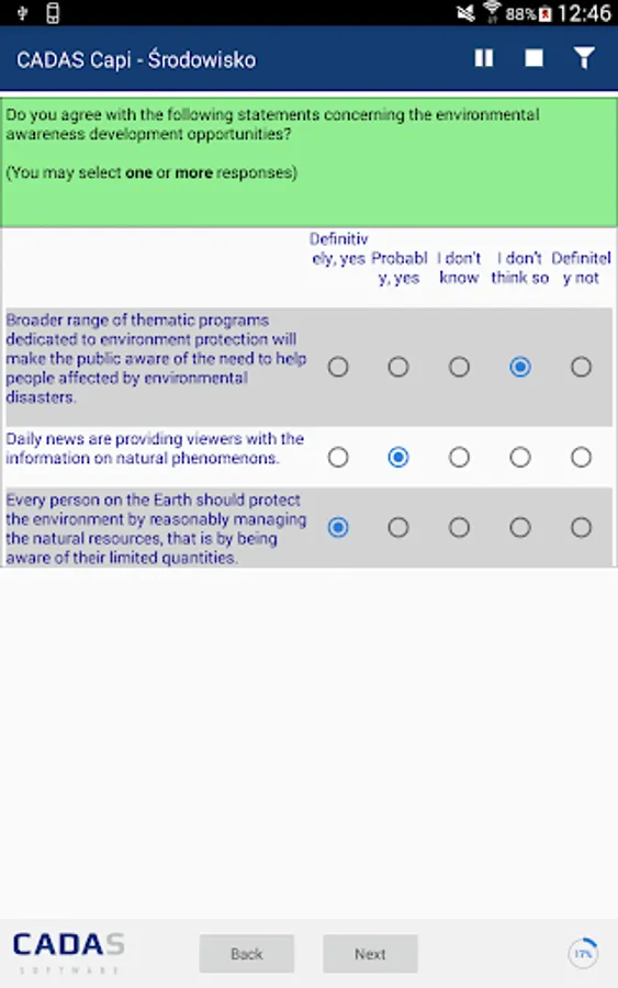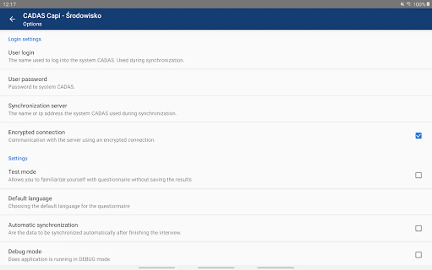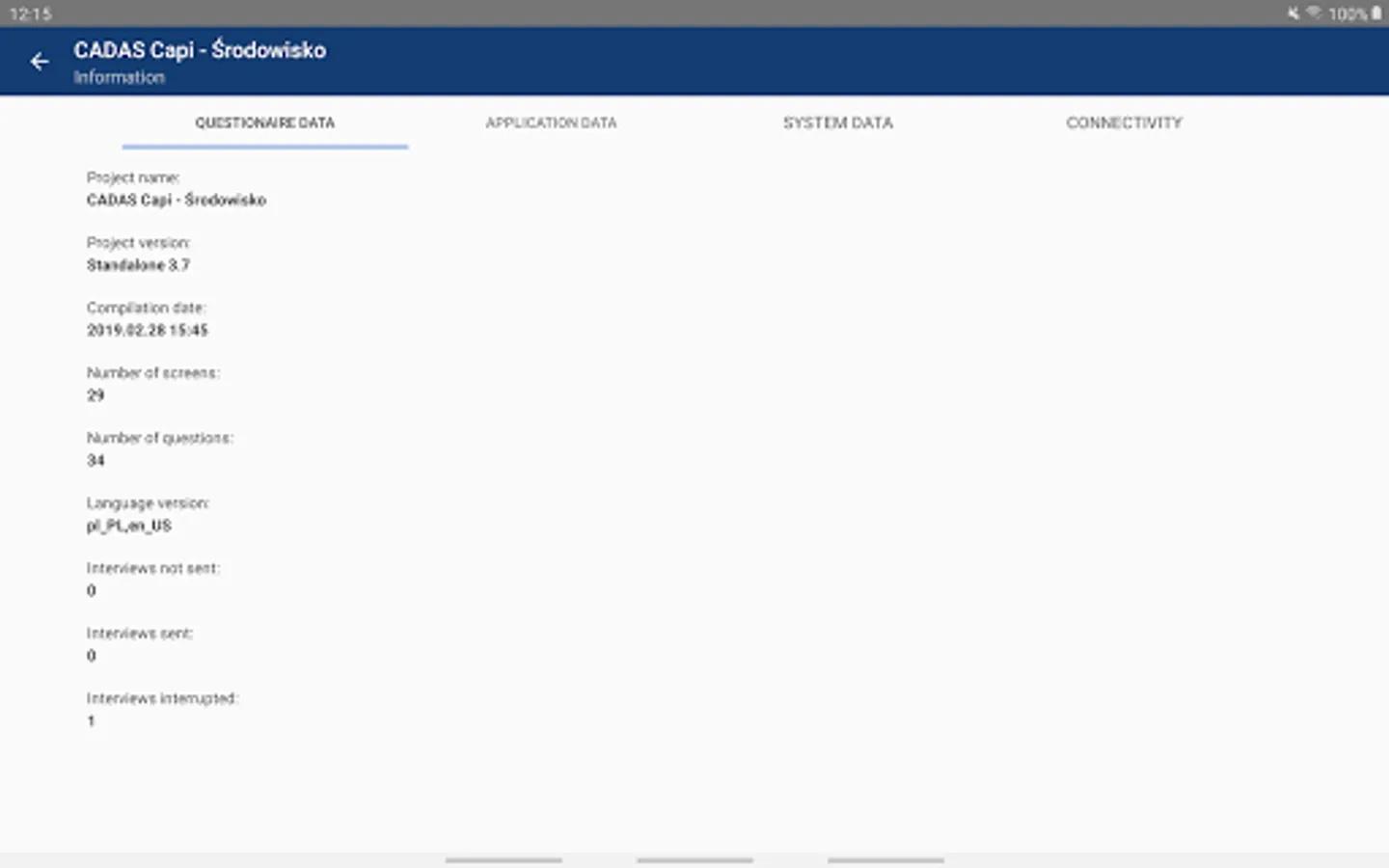 Our solution enables transferring questionnaires to mobile devices in a single file created in the common graphical questionnaire editing environment of the CADAS QET application, where CAWI, CAPI and CATI questionnaires are created for implementation on the CADAS Platform. Common tools and compatibility with CAWI and CAPI surveys greatly simplify the management of the project at all its stages.