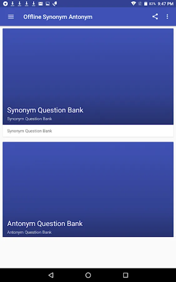 Offline Synonym Antonym contains both the Synonym and Antonym for a particular word.With this App learning synonym and antonym becomes easier.