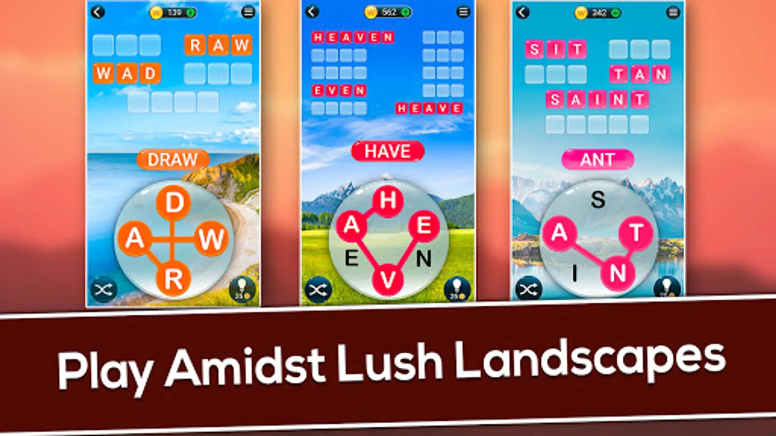 Ward off boredom and welcome tranquility playing this classic word link game that will test your puzzle solving skills, vocabulary, and spelling. And with serene backgrounds showcasing Planet Earth, your state of Zen will never be in jeopardy!