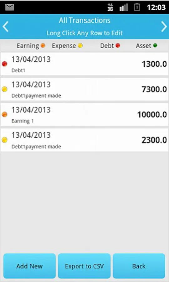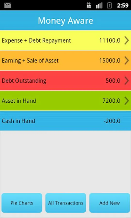 The Money Aware app helps you record all your transactions- earning, expense, debts and assets.