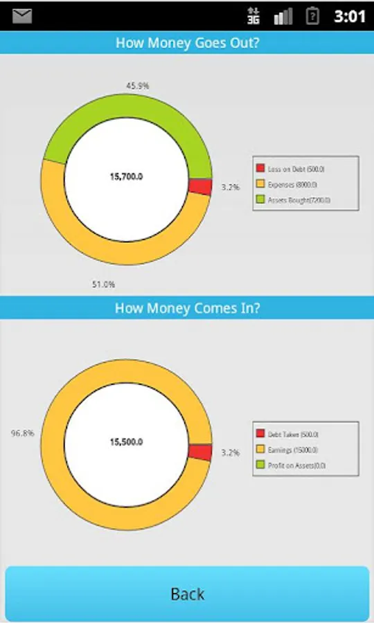 This app helps users track all their financial transactions and gives a view of their financial health through pie charts. User also knows his/her situation on how he/ she stands on debt, assets, earning, expenses etc.