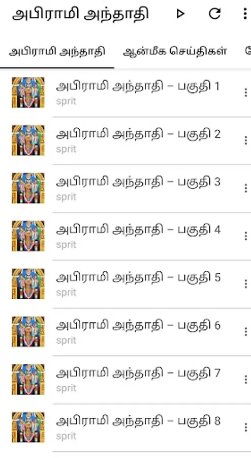 There are a hundred stanzas plus a காப்பு (Kāppu, protection) verse for lord Ganesha and a final பயன் (Payaṉ, outcome), thus a total of 102 stanzas that are included in Abhirami Anthadhi. The author praises Abhirami as his mother, regrets his mistakes, speaks of the divine play of mother and father Sivan, and her simplicity & mercy. It is believed that the recitation of each stanza will result in the specific achievement of the devotees.
