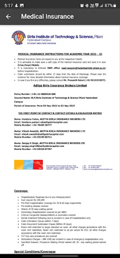 This is the app for the Student Welfare Division Portal of BITS Pilani, Hyderabad Campus designed for the convenience of the student community.