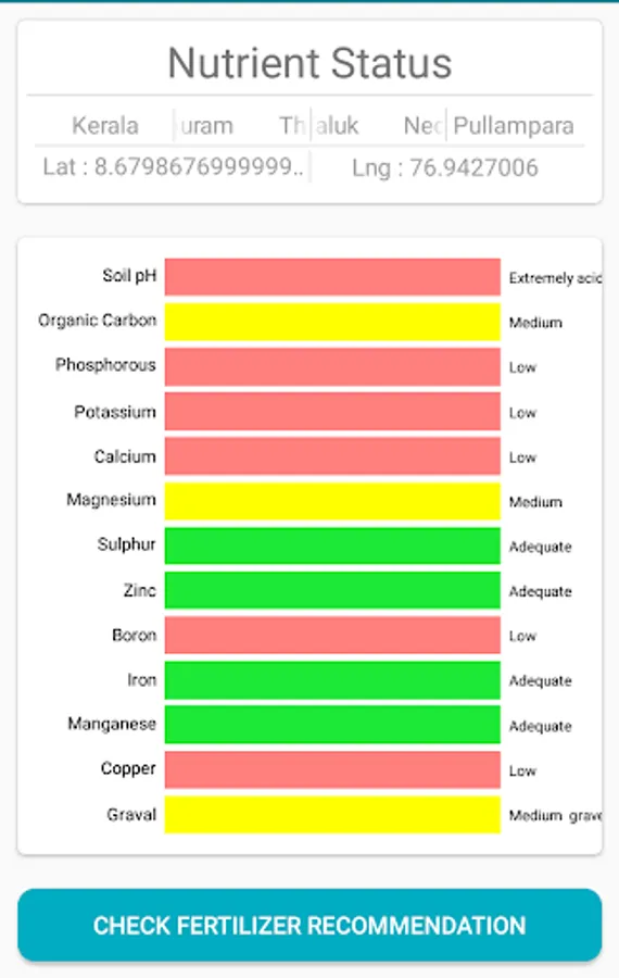 Browser and Mobile based fertilizer recommendation was developed based on interpolated soil fertility data in collaboration with Indian Institute of Information Technology and Management - Kerala (IIITM-K) overlaying different soil fertility parameters and soil depth following the guidelines of discriminatory fertilizer recommendation.