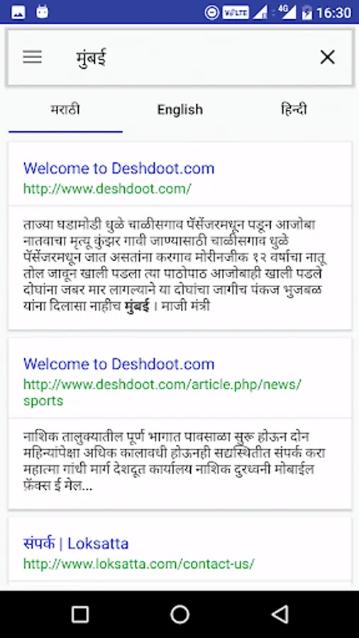Sandhan is a cross lingual search engine for Indian Languages. It’s main aim is to provide Tourism information in Indian Languages. Currently, Sandhan supports nine Indian languages which are Hindi, Marathi, Tamil, Telugu, Bengali, Punjabi, Assamese, Gujarati and Oriya. User can enter the query in any one of these languages and in output he will get list of sites in English, Hindi and a language in which he has searched the query.