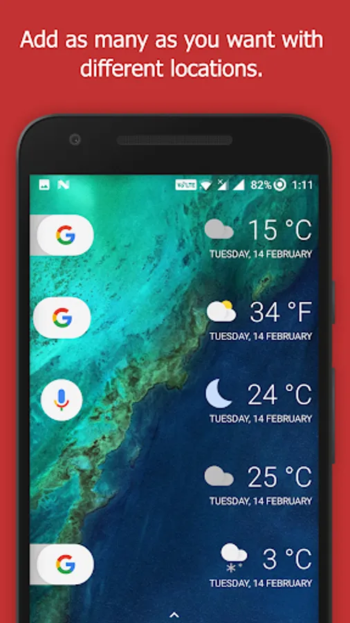 Pixel Weather Widget gives an option to open Google Weather on just one click on the weather widget.