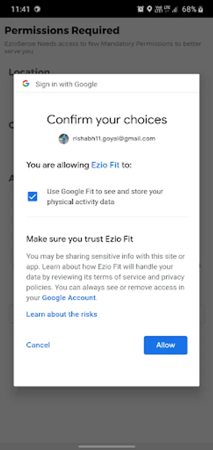 Ezio Fit is a Fitness tracking app that works with the "Eziosense PM2.5" App [ https://play.google.com/store/apps/details?id=in.aerogram.eziosense.pm2_5 ] & "Google Fit" by enabling you to make informed decisions about your health based upon Real-Time Pollution Data combined with your Personal Fitness Data.