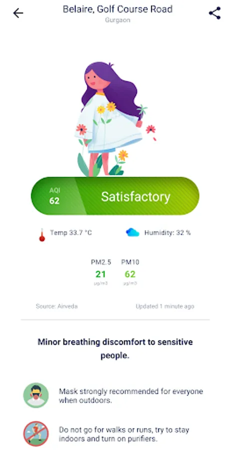 • Interactive map - See AQI, PM2.5, and PM10 for all air quality monitors in the selected location, including Airveda Outdoor monitors.