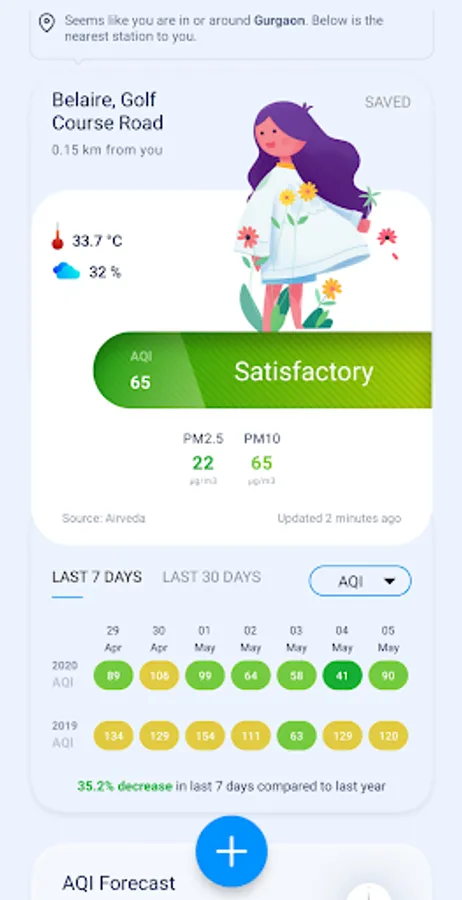 The Airveda app provides accurate and real-time air quality index (AQI) from locations across the globe. Track outdoor air quality in your city – including PM2.5, AQI, and PM10 values, view historical air quality data for any location, know how pollution levels in your city compare with global figures and make informed decisions that help you Breathe Well and Live Well.