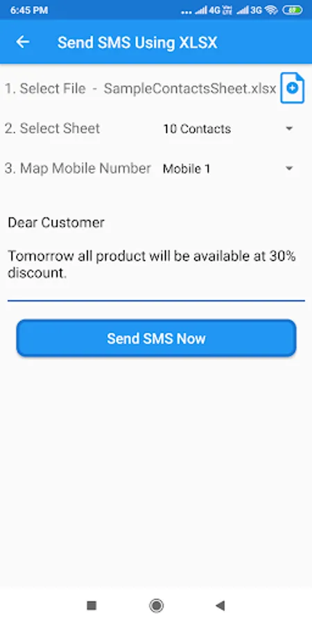 Bulk SMS Send Using Excel Screenshots