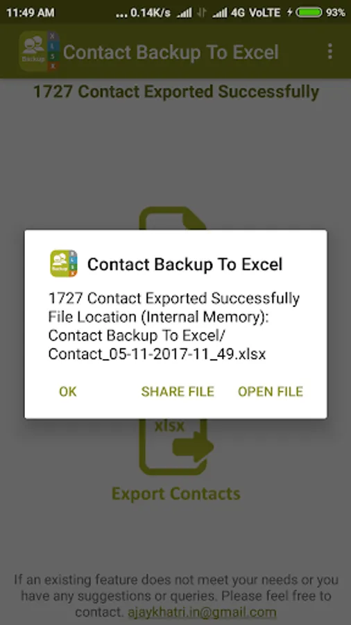 Excel file is created in your phone memory Folder Name "Backup Contacts To Excel".