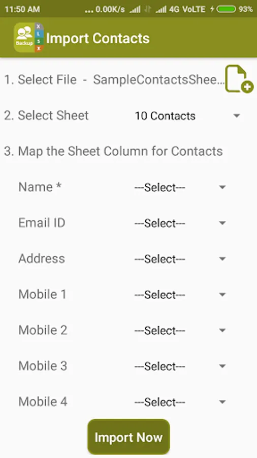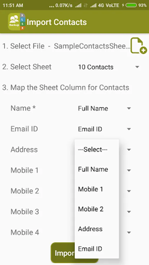 4. You can map excel sheet column header to contacts fields. (No need to rear range your excel sheet for import)