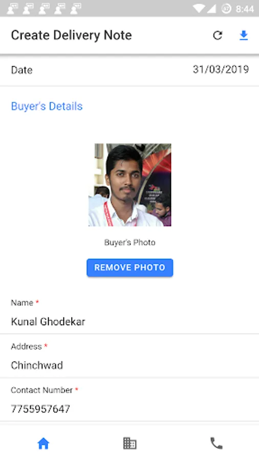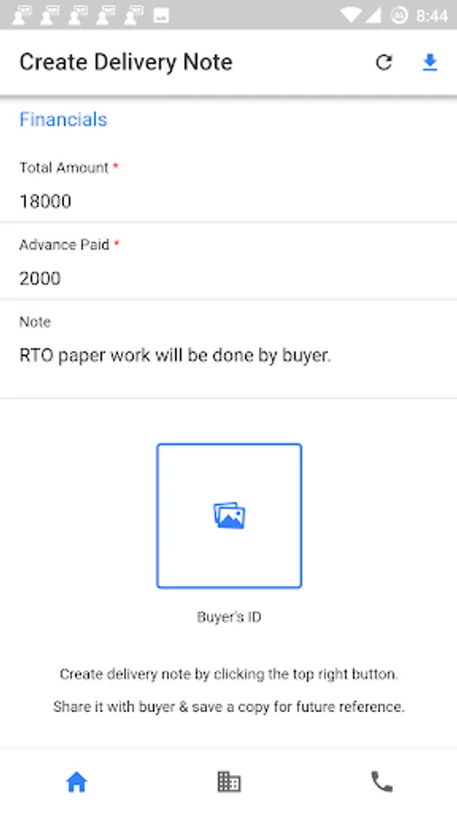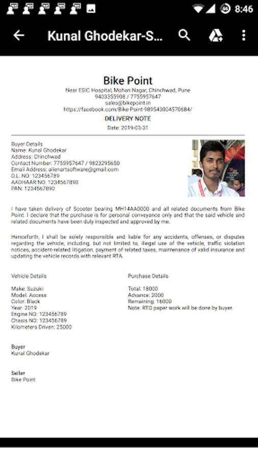 A delivery note in pdf format will be generated which can be shared with the buyer or save it locally or on the Google Drive / Dropbox for future references.
