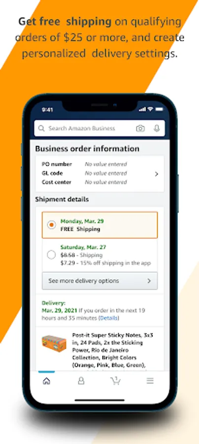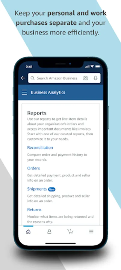 The Amazon Business app is your one-stop shop for finding and making business purchases on the go. Save time with fast and easy search and 1-click purchase for all you need to keep you—and your business—moving. A free Amazon Business account is required.