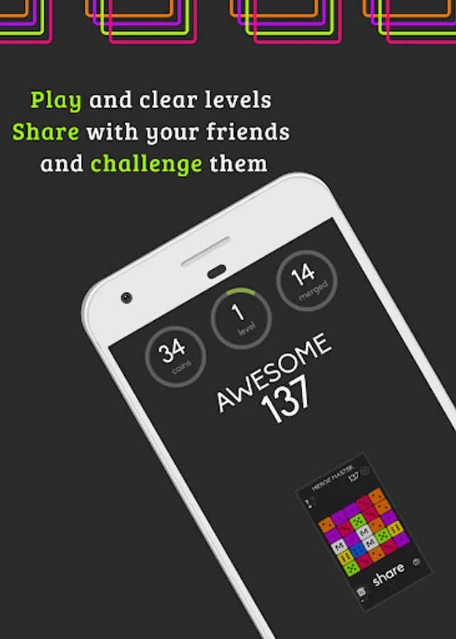 · Play, clear level & share it with your friends to challenge them.