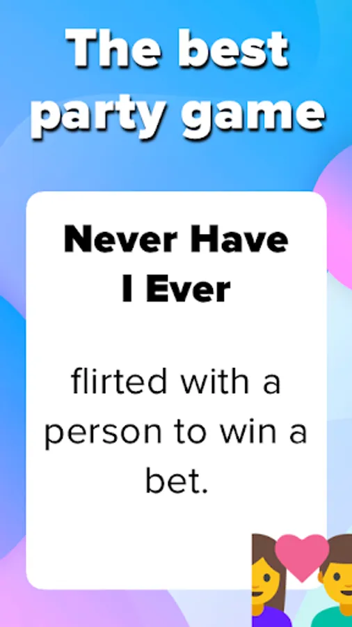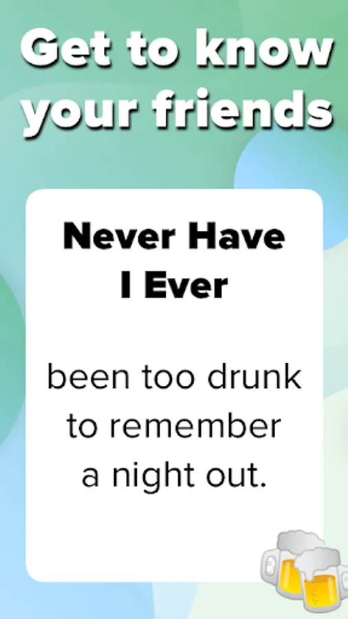 We created the most interesting Never Have I Ever set of questions that will let you know your friends on a new level. There are more than 10 categories to explore and know your friends in different ways. You can even let the game decide whose turn is it to complete the 'Never Have I Ever.' sentence.