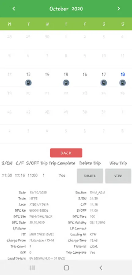 6) In "Stats" page you can see your trips for all the days you went on duty.