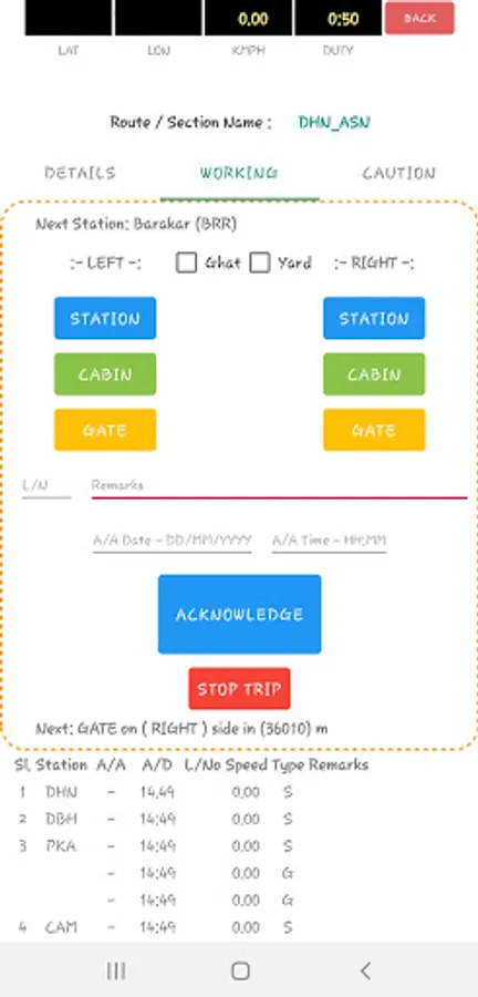 3) The first time you visit a section you need to train the app for the particular route. From the next time onwards the app will show you the upcoming Station/Cabin/Gate and also show you your current distance from the entity.