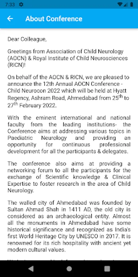 Application gives you entire information about the conference. What all is there in the conference. Which faculties, conference location and other venue related details.