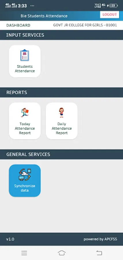 Application to capture the students attendance by the principal. Principal has to login and click on the Synchronize data button on the dashboard to sync the children information offline on the device. Without synchronizing the child information, principal cannot capture the attendance of the students.