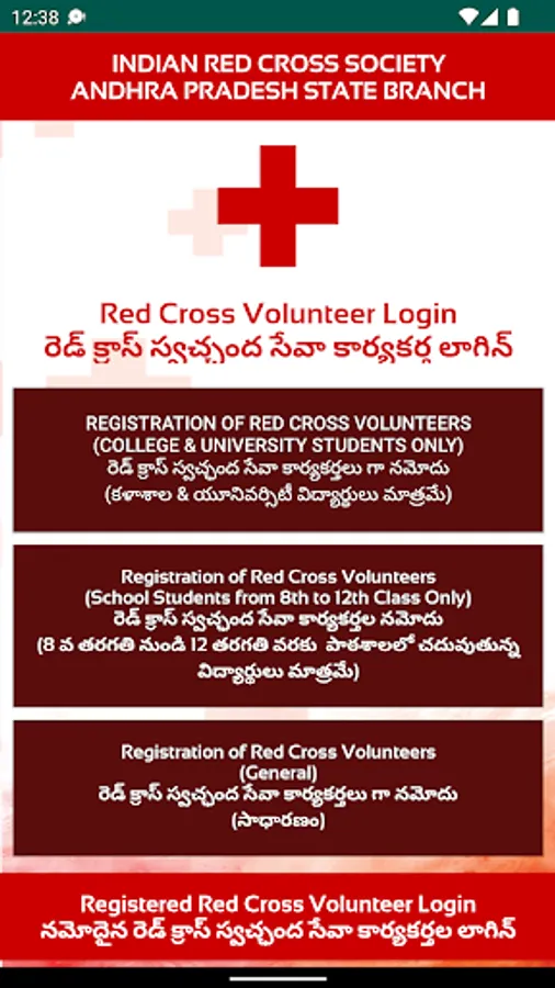 The Indian Red Cross Society (IRCS)is a voluntary humanitarian organization providing relief in times of disasters/emergencies and promotes health and care of the vulnerable people and communities. It is a leading member of the largest independent humanitarian organization in the world, the International Red Cross & Red Crescent Movement. Hon’ble President of India is the President at the national level and Hon’ble Governor of Andhra Pradesh is the President at the state level. AP Red Cross is a digital platform for all the Red Cross Volunteers( Junior Red Cross/ Youth Red Cross/ Social Emergency Response Volunteers/Community Volunteers) in the State of Andhra Pradesh for on line training and capacity building and to monitor real-time the various activities undertaken by them.This mobile app is developed in house by the Andhra Pradesh Centre for Financial Systems and Services (APCFSS)under the Finance Department of Government of Andhra Pradesh for the Indian Red Cross Society(IRCS), Andhra Pradesh State Branch