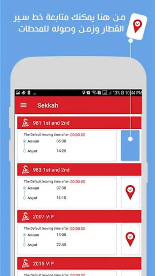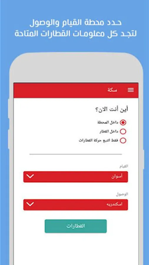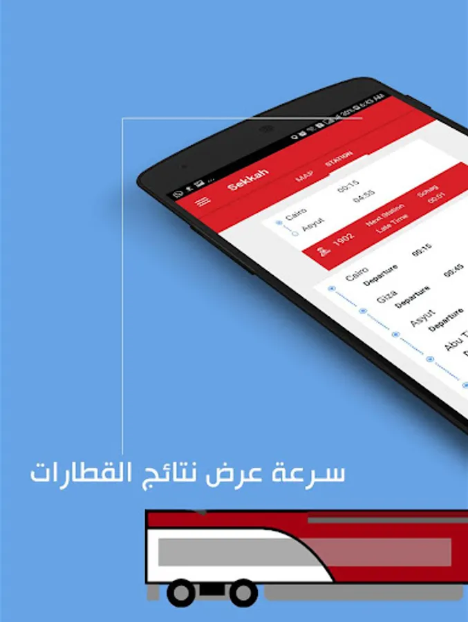 ملحوظة: التطبيق ما زال تحت الاختبار وبه جميع قطارات الوجة البحري من القاهرة الي الإسكندرية ويعمل فريق التطوير على إضافة كافة القطارات .