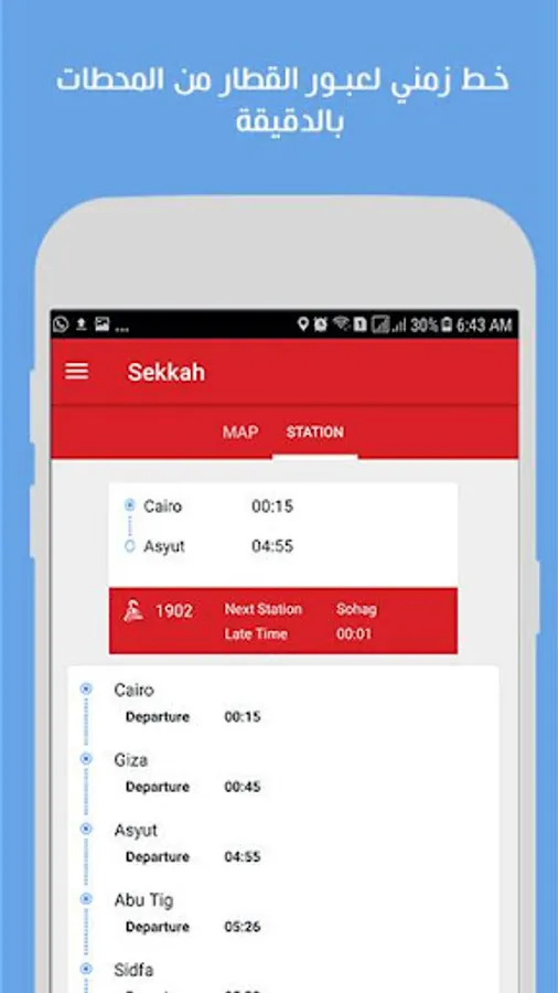 سكة هو تطبيق يساعد المسافرين على معرفة جدول مواعيد القطارات مصر 2020 بالإضافة الي وقت وصول القطار الفعلي للمحطات داخل جمهورية مصر العربية، يعمل التطبيق علي معرفة الميعاد الفعلي للقطار بالدقيقة لتوفير الوقت حيث لا فائدة من انتظار القطار لساعات او السفر دون معرفة وقت التأخير الفعلي، حمّل الآن نسختك المجانية من تطبيق سكة.