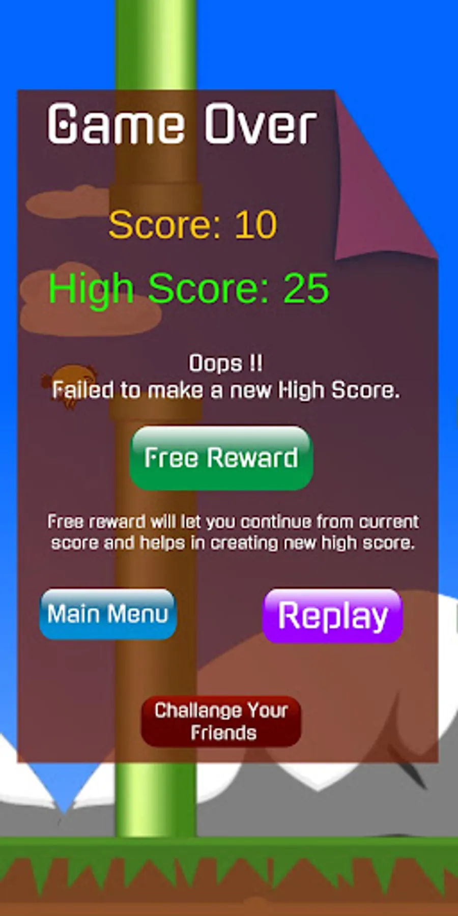 This game aims to make as much score as possible by taking the bird forward without touching the pipes.