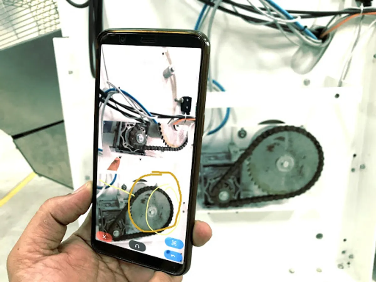Air-Board connects a remote operator in front of the machine with the expert (expert sitting in his office) through a video call, where expert can guide the operator to fix the issue in the machine. Expert can also mark over the machine in real-time using his/her smartphone over the machine. This greatly enhances the ability of the operator to understand the components in context and makes the troubleshooting process easier.